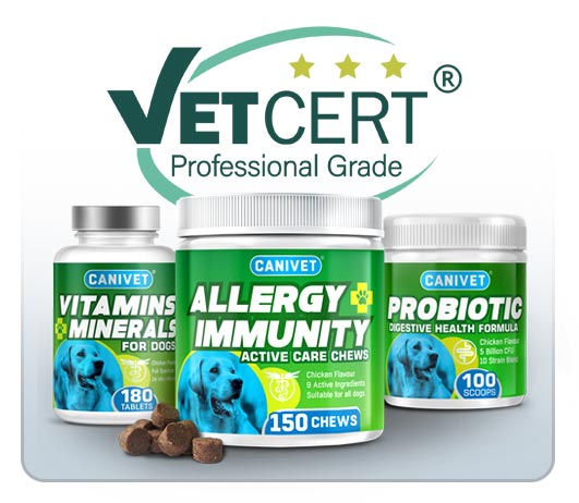 The VetCert® icon attached to the CANIVET line indicates that product purity, consistency and quality matches or exceeds the standards of the UK’s best veterinary brands.